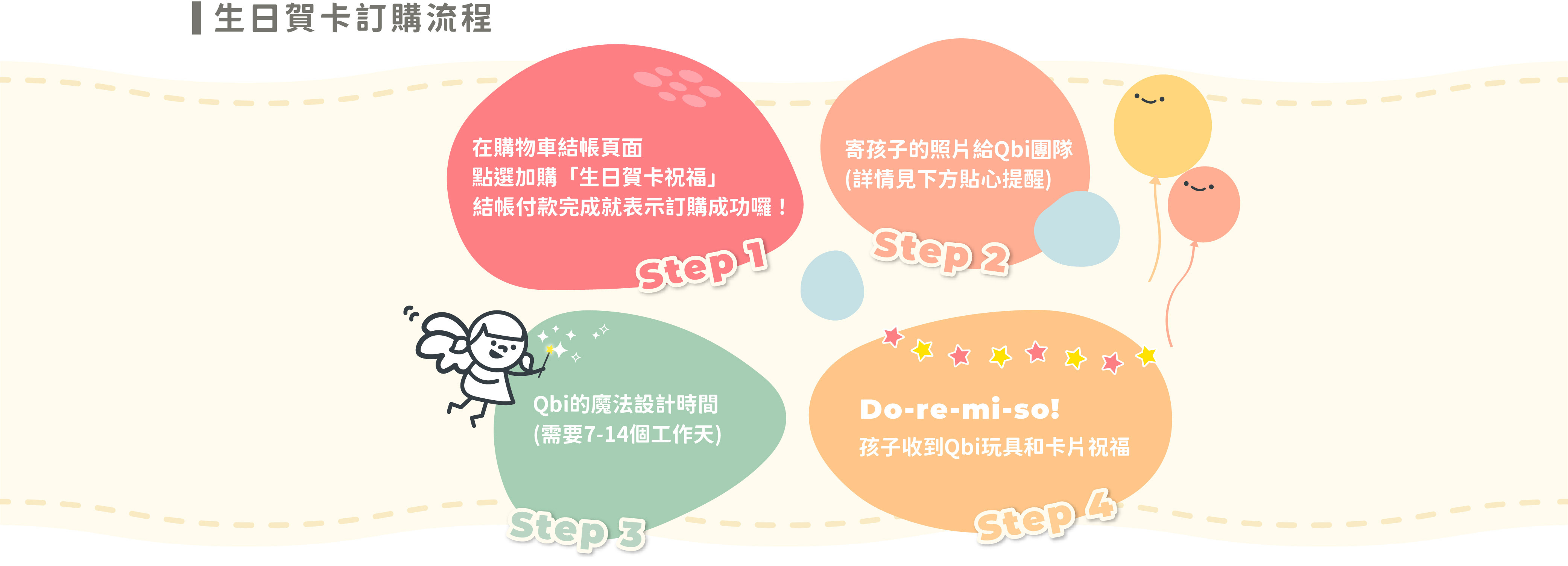 最好玩的生日禮物就選 Qbi ! 就讓 Qbi 當家長的禮物大使,我們推出「生日卡片」服務囉。