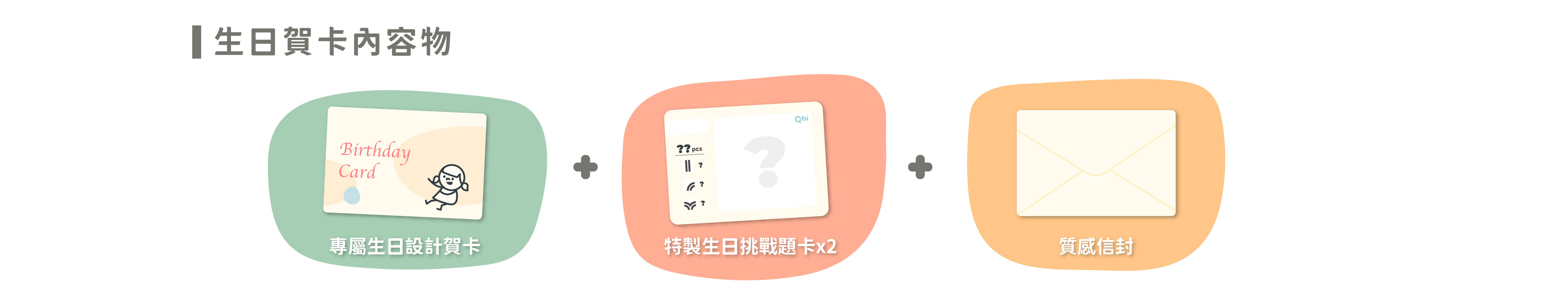 只要在結帳時加購賀卡服務,就能讓孩子收到包裹的驚喜加倍、歡樂無限!更棒的是,加購生日賀卡只要$1元,讓 Qbi 替你傳達祝福心意給孩子❤️