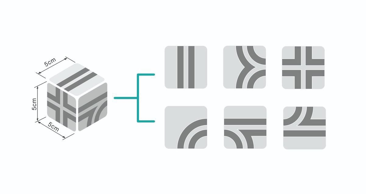 Qbi的軌道方塊,共推出2種方塊造型。方塊的連接使用強力磁鐵,可以任意方向連接,沒有磁極互斥的問題。