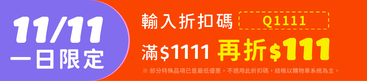 ※ 部分特殊品項已是最低優惠價,不適用此折扣碼,結帳以購物車系統為主。