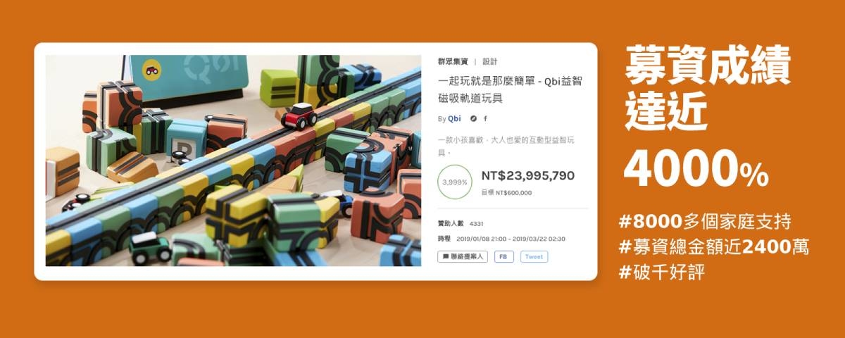 Qbitoy益智磁吸軌道玩具於2019年3月22日結束在嘖嘖平台上的群眾募資計畫,共計74天,獲得4331筆贊助,創下台灣玩具類群募最高紀錄,也是2019年上半年台灣金額最高的募資專案,3999%總金額2399萬元。
