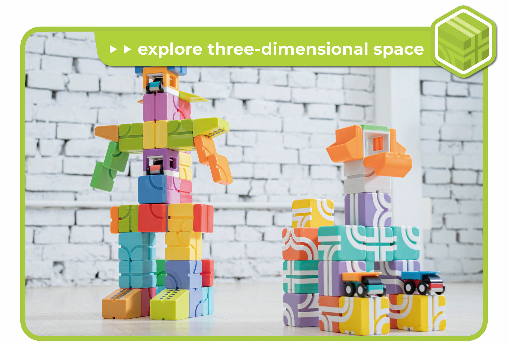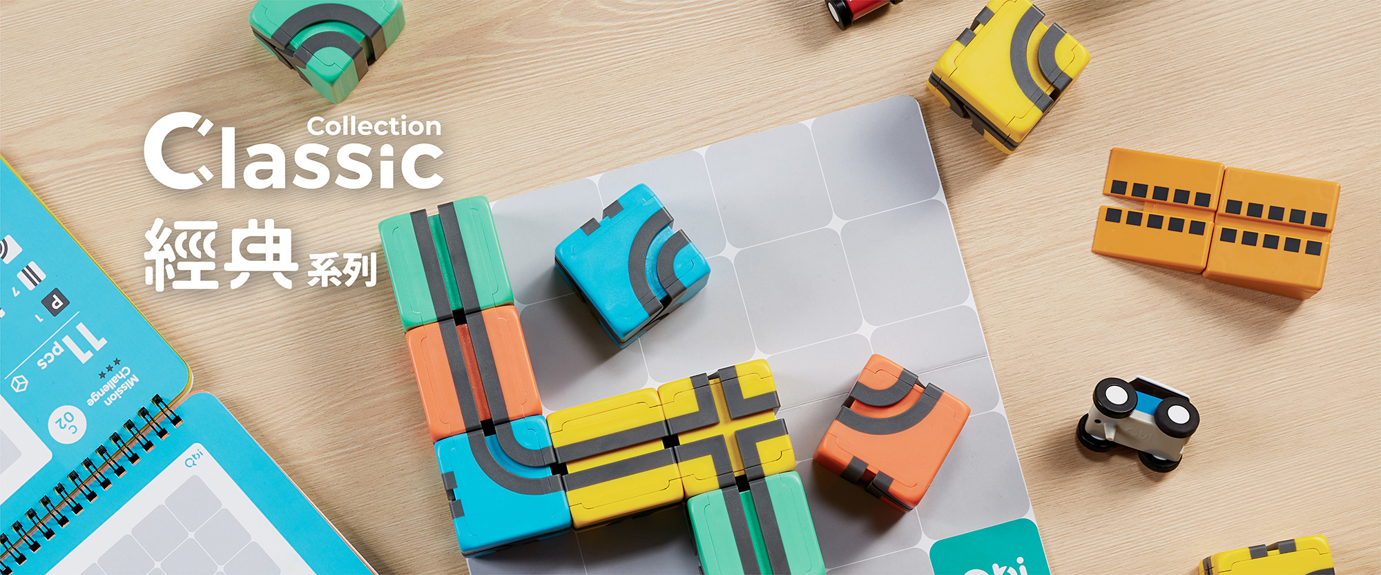 Qbi的基础玩法是从平面轨道开始学习,待孩子熟悉后,就能进阶探索立体空间观念;无论是堆叠积木、或是组出3D立体轨道,小朋友都能从玩乐中学习立体空间逻辑。