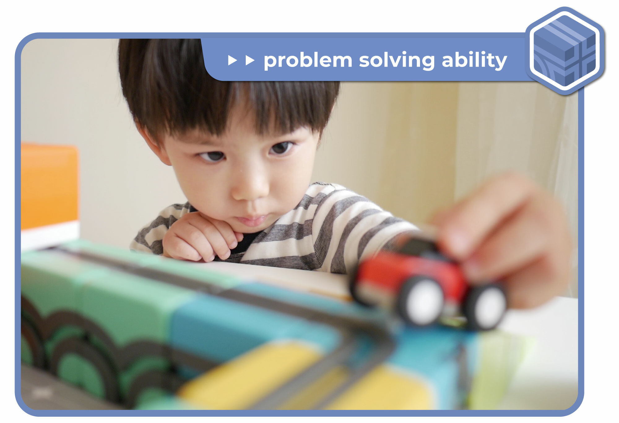 为什么小车会卡住?为什么轨道排列不顺畅?在玩乐的过程中,孩子主动找出问题点,并付诸行动解决,从中获得自信心与成就感。