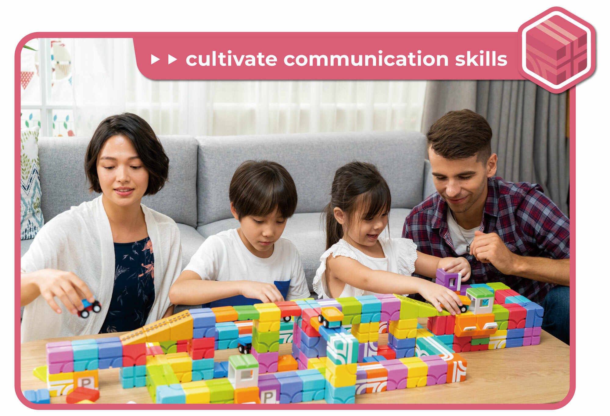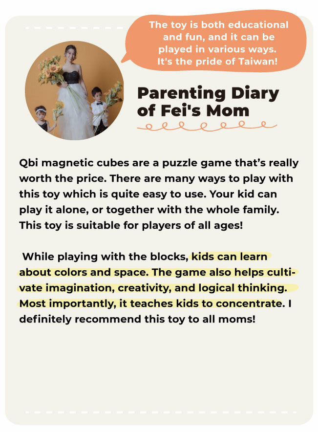 Qbi是美国STEM.org认证的益智玩具,适合全家大小一起同乐。在玩乐的过程中,可以和家人组队比赛、也能和兄弟姊妹一起闯关。孩子在玩乐中说出自己的想法、一起参与讨论,这些小细节都能训练宝宝的沟通能力。