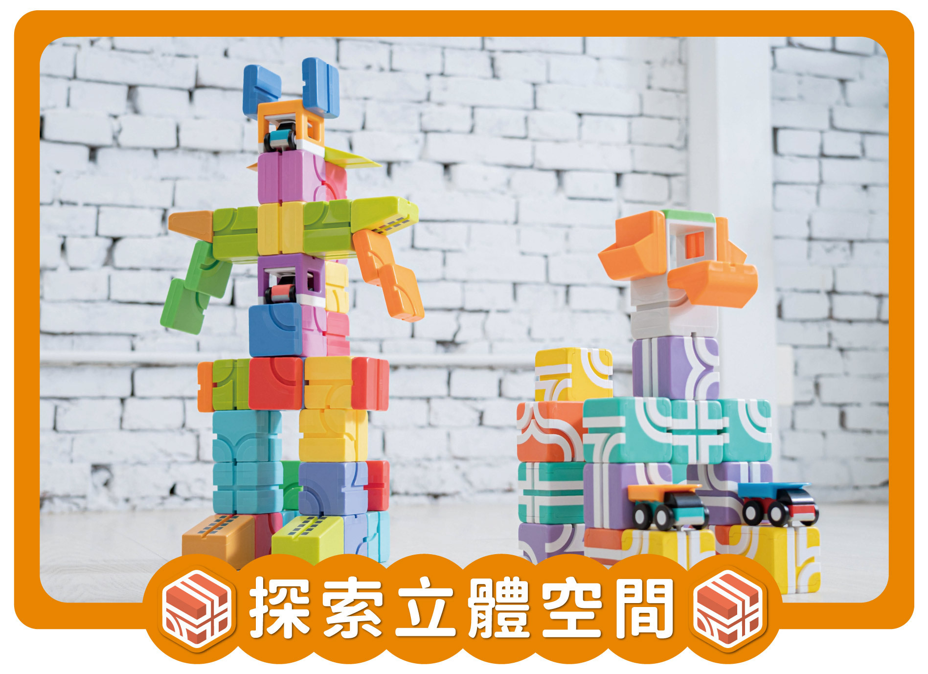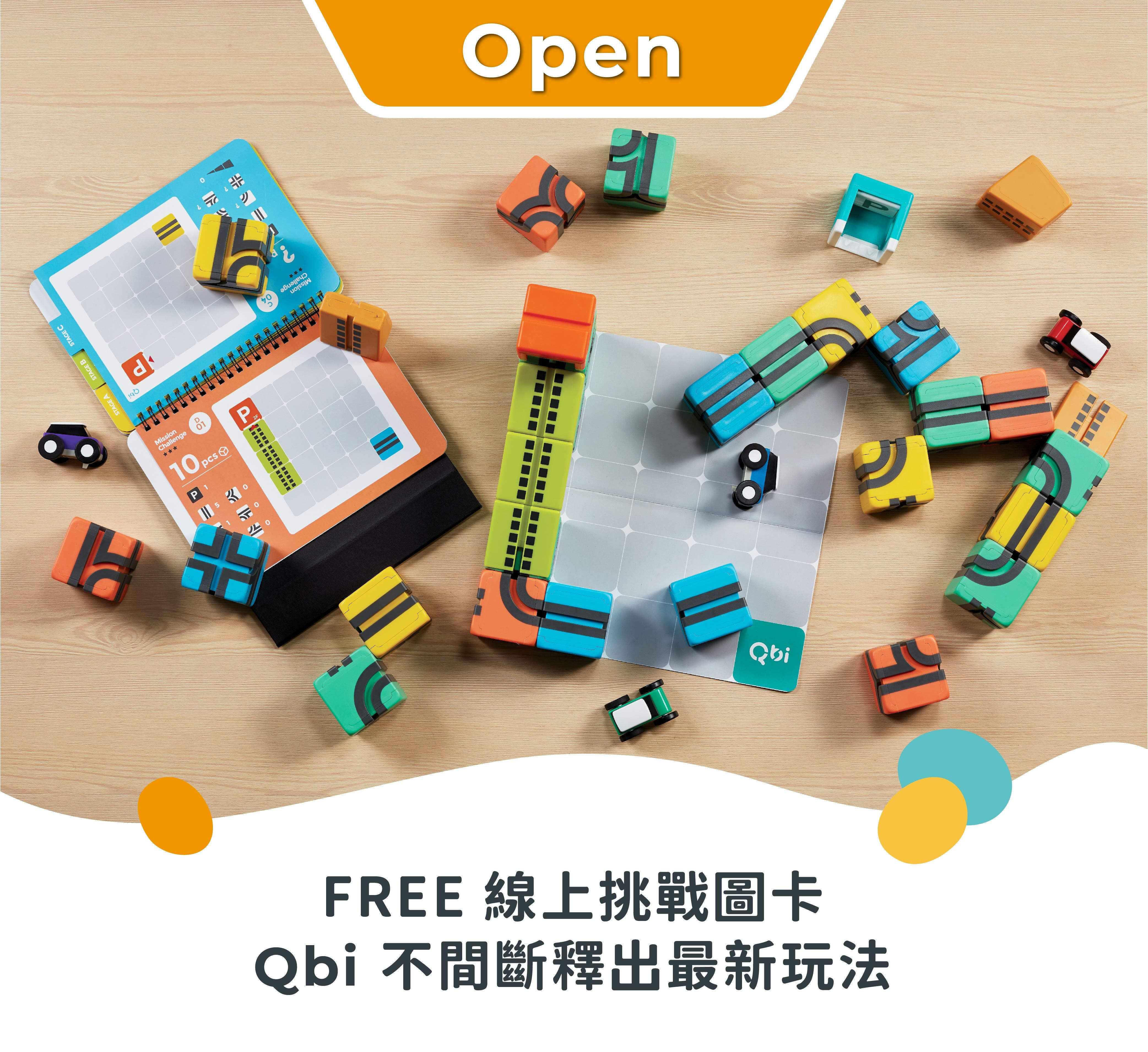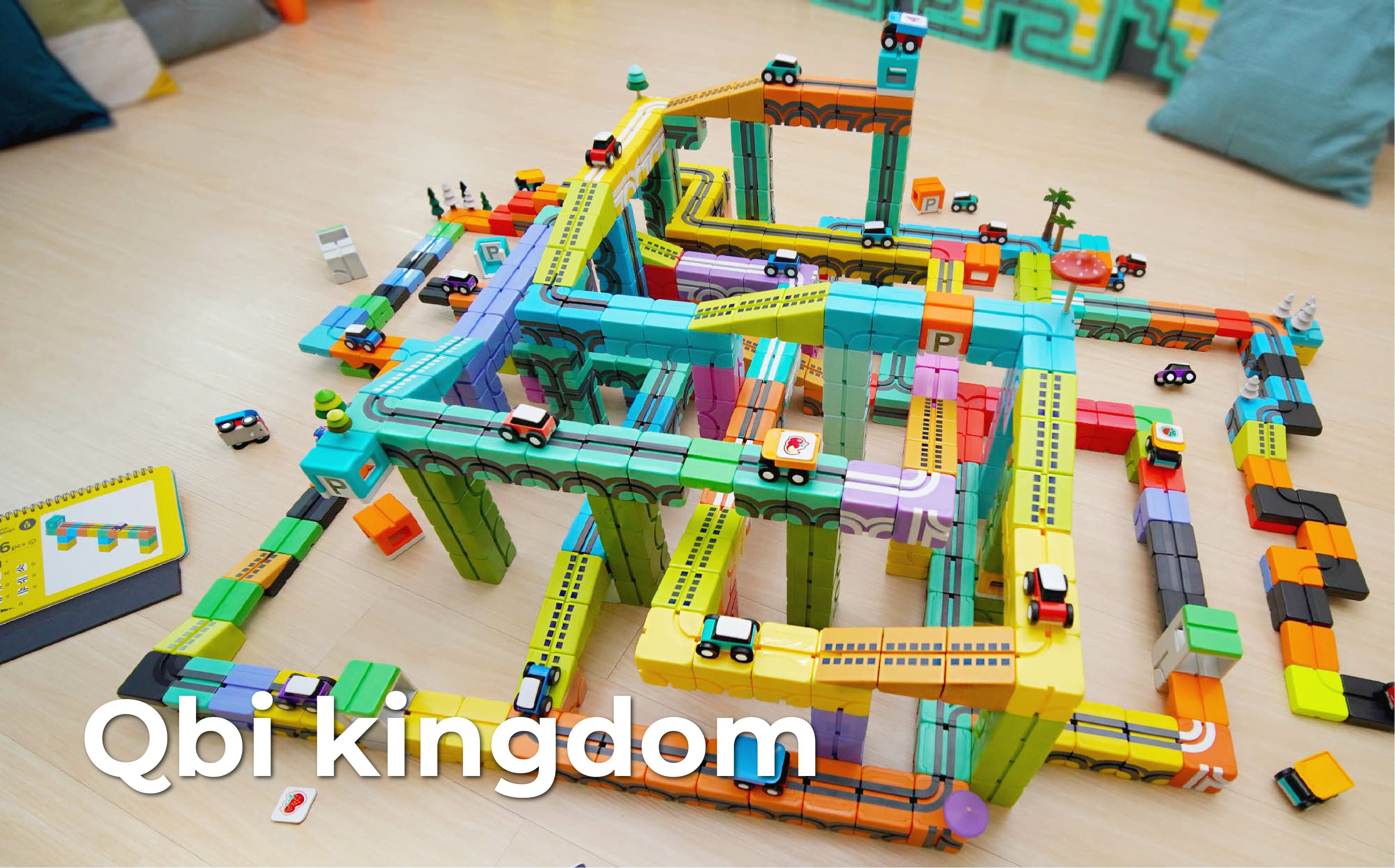 Qbi的基礎玩法是從平面軌道開始學習,待孩子熟悉後,就能進階探索立體空間觀念;無論是堆疊積木、或是組出3D立體軌道,小朋友都能從玩樂中學習立體空間邏輯。
