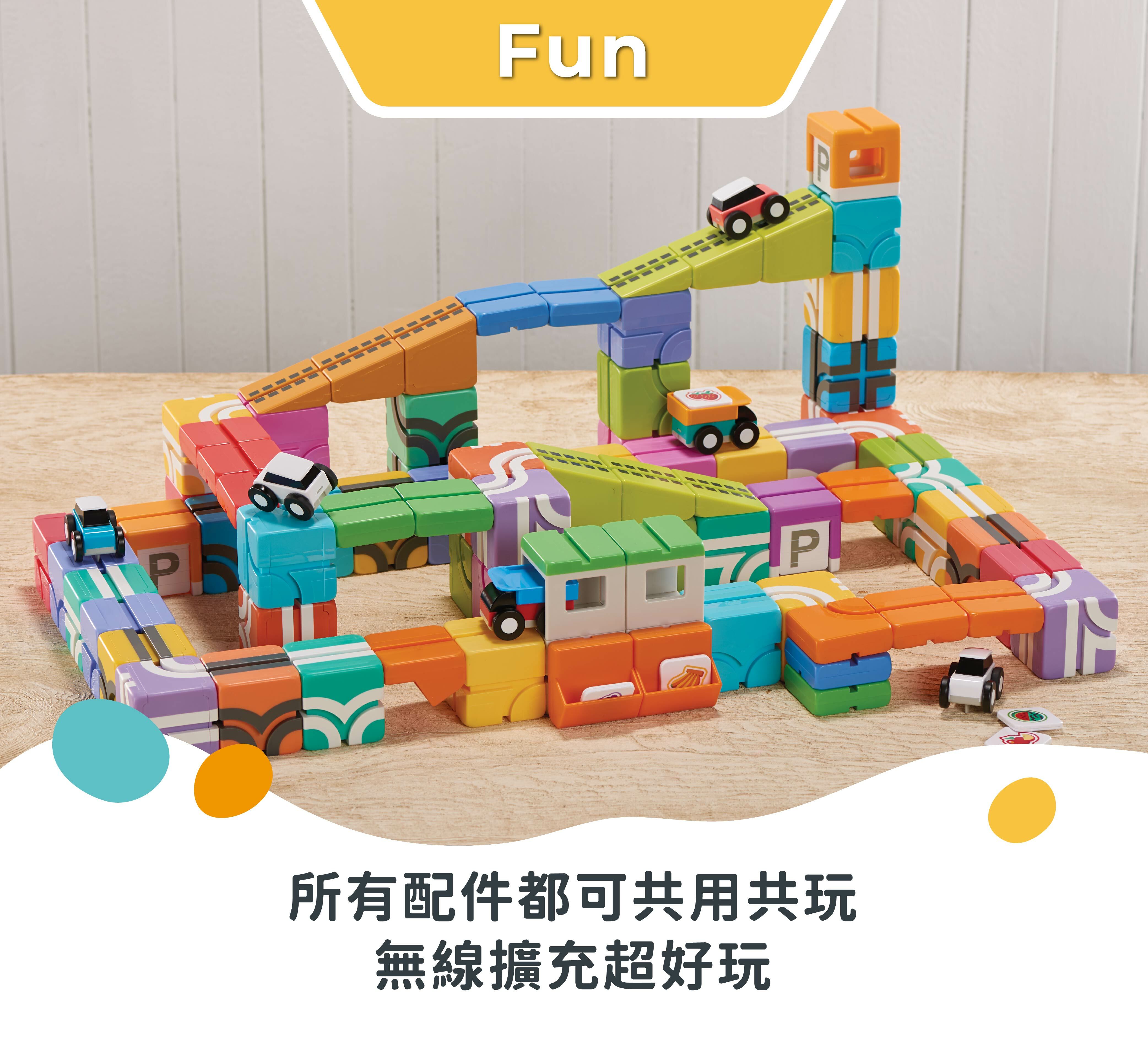 如何組出軌道、並讓小車順利行駛?怎麼用最短路徑到達終點?透過組裝、思考、嘗試、排列的過程中,可以培養邏輯思維,應用在未來的任何學習上。
