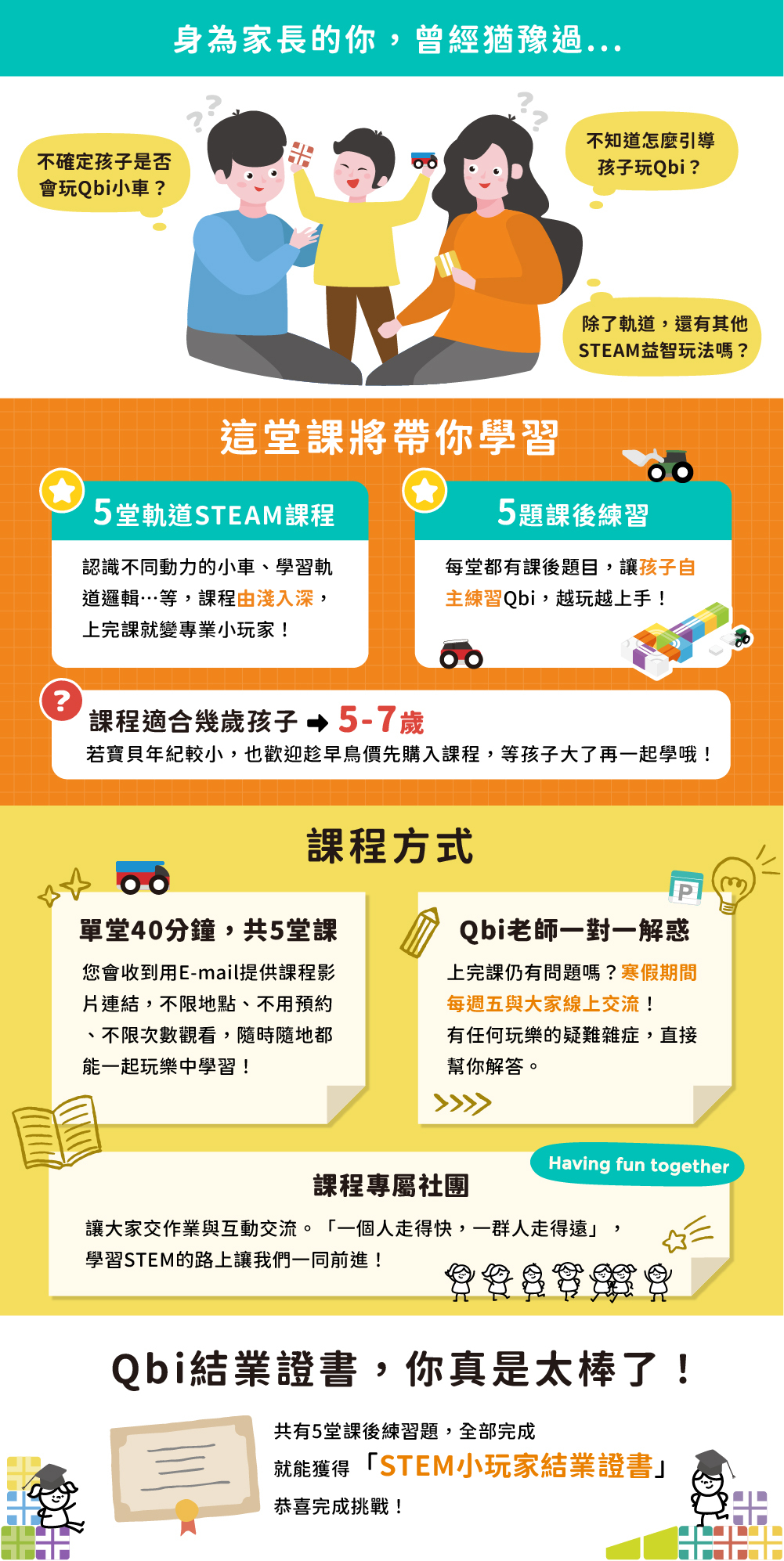 • 此產品僅販售「線上課程」,請自備「3歲工程小英雄+4歲飛車小玩家」2項產品配件。