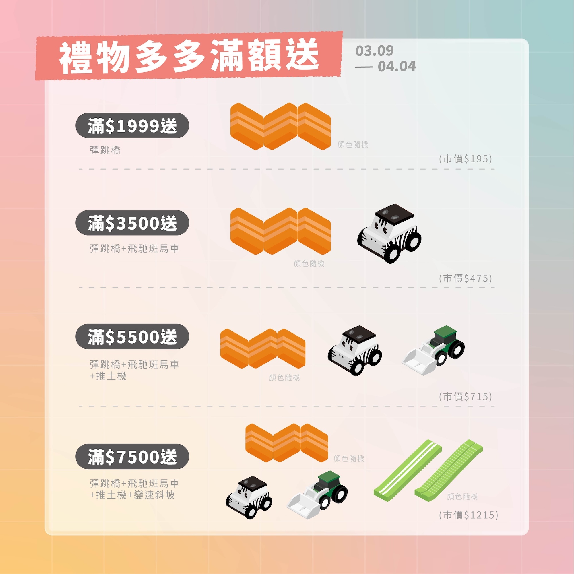 ※ 每款贈品數量有限,贈完將改送其他商品,恕不另行通知|每階門檻禮物,每筆訂單至多僅贈送乙次。